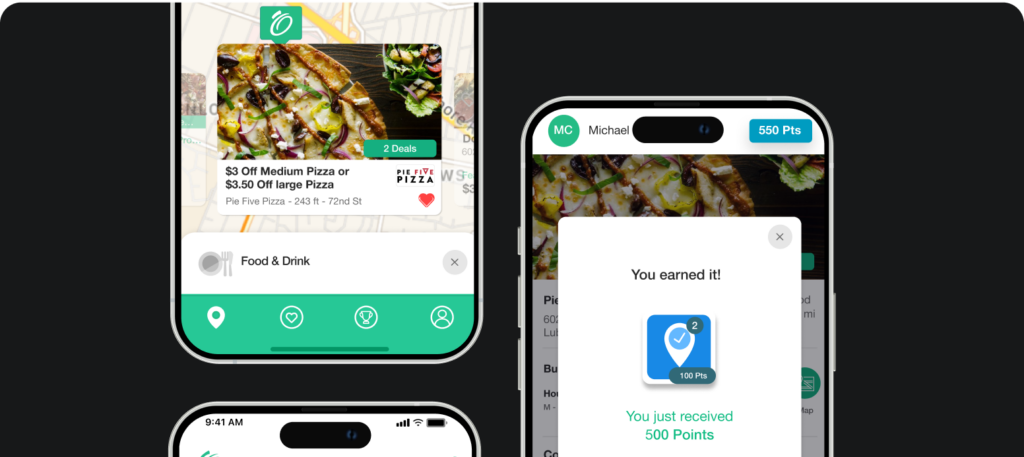 After a few months in the app store, we saw that many users were downloading the app, but getting them to stay and engage businesses was starting to become difficult. We found this was due to businesses having to offer deals, and many times, if they didn’t regularly present offers, users would bounce. Our solution was adding an in-app rewards system that doesn’t solely rely on local business’ offers. Users could complete a number of tasks or “missions” and received points, which they could in turn redeem for gift cards from various merchants. This was a super fun addition to the app! I had a blast designing the rewards system and animations. Once we launched the update, users immediately loved it.
