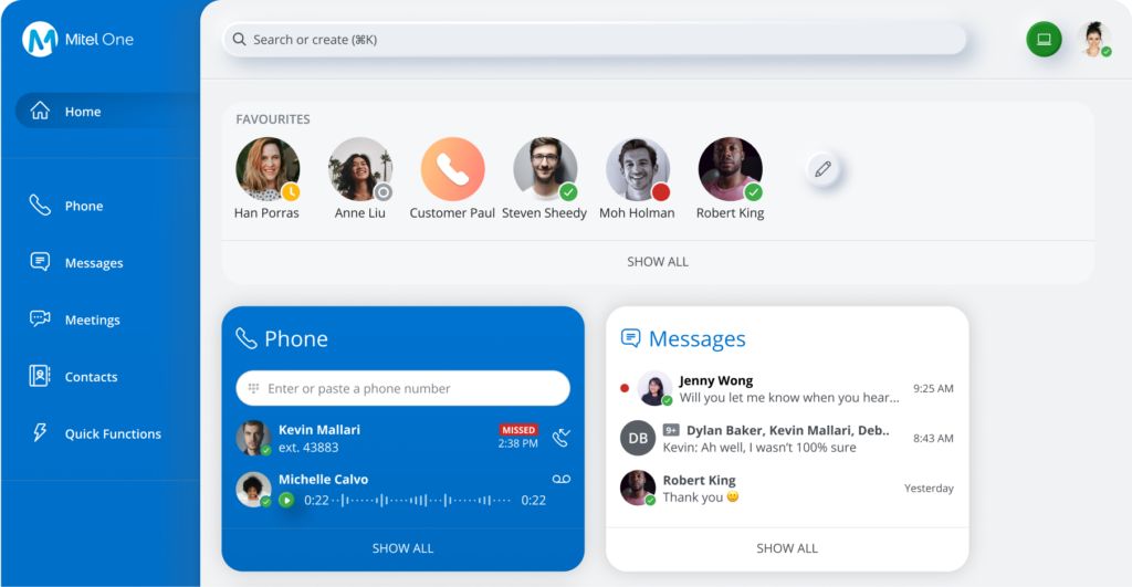 Mitel One would have 5 main features/sections: Phone, Meetings (videoconferencing), Messaging, Global Search, and Quick Functions. Of these, I was responsible for Quick Functions (read about that here) and Messages.